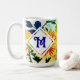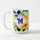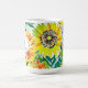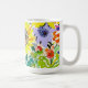 Bonito cor-de-água rosa, amarela e púrpura, flores de ai art, caneca de café floral. Adicionar inicial na área personalizada.