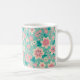 Esta caneca apresenta um design delicioso de flores cor-de-rosa no cheio florado contra um fundo azul nítido. É uma maneira encantadora de começar seu dia ou aproveitar uma xícara relaxante de chá.