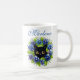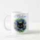Flores personalizadas Bluebonnets, gato preto, estrela solitária, design floral texano. Linda ilustração de flores azuis. Estado do Texas. Caneca de Bluebonnets.