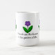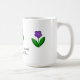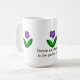 Um design adorável com flores bonito de jardim roxos em pé acentua esta caneca de café. Uma doce mensagem: "Amigos são as flores do jardim da vida" A mensagem pode ser mudada se assim o desejar.