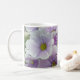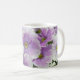 As lindas flores de Primula roxas fazem uma linda imagem para esta caneca de café floral, ideal para um presente