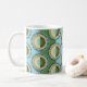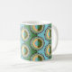 Caneca De Café Flores dobradas: padrão retroazul-verde.