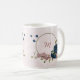 Caneca de café romântica e linda com flores rosa e azul marinho e algumas folhas bonitas .