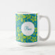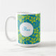 Uma variedade de flores tropicais em amarelo brilhante sobrepõe turquesa para fazer desta caneca a maneira perfeita de começar o seu dia. O nome ou a mensagem personalizados se destaca em um círculo branco. Disponível em cores alternativas com produtos correspondentes.