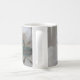 Esta caneca apresenta uma fotografia de uma espécie britânica de Flower Beetle, verde-azulada, sentada sobre uma flor branca de craveiro. A foto foi tirada usando macro fotografia para mostrar o detalhe e a cor dessa bela espécie de besouro. A design é mostrada em uma caneca de café branca básica, mas também está disponível em outras cores e estilos de caneca.