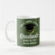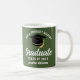 Este presente de caneca de graduação verde do exército apresenta tipografia clássica da sua academia militar, segundo grau ou nome da faculdade para a classe de 2025. Personalize com o seu ano de graduação sob o script manuscrito branco chic e boné formando preto para uma manutenção personalizada do formando excelente.