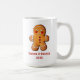 Esta engraçada caneca de Natal apresenta um doce gerado por IA coberto por uma foto de Gingerbird perfeita para destacar sua foto de feriado favorita. Nas costas está outro homem de pão de gengibre com um lugar para personalizar com nomes e o ano.