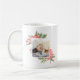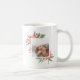 Sip em estilo nesta temporada de festas com nossa caneca de café festiva, apresentando duas de suas fotos favoritas em formato quadrado, emolduradas por flores de pénia de cor vermelha e folhagem verde esmagadora.