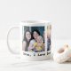 O costume imprimiu a caneca de café personalizada com suas fotos e "mamã eu te amo à mensagem feita sob encomenda da lua e da parte traseira". Adicione 3 fotos especiais e use as ferramentas de design para escrever sua própria mensagem para o aniversário da mamã, o dia das mães, o Natal ou a toda a ocasião. O clique personaliza-a para mudar as pias batismais e as cores do texto, move-o coisas ao redor ou adiciona-o mais fotos para criar seu próprio presente original da foto do aniversário para a mamã ou a avó!