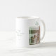 Celebre junto com esta caneca personalizada, apresentando sua foto favorita exibida em um quadro clássico com uma camada verde suave de gradação. Uma coroa festiva com um monograma familiar adiciona um toque sazonal acima da imagem, enquanto a parte inferior inclui um texto "familiar" editável que você pode personalizar ou remover para se adequar a qualquer ocasião. Um presente de Natal perfeito, guardar para reuniões familiares, ou artigos de mesa personalizados para jantas de férias e celebrações.