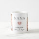 Caneca personalizada para a melhor nana já com 2 fotos de seus netos, "NANA" em tipografia elegante e um coração de ouro rosa. Adicione os nomes de seus netos.