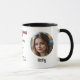 Caneca de escritório com uma foto (à esquerda e à direita da caneca) e a descrição de como gostaria de seu café. Você pode escolher uma cor diferente para cada membro da equipe, se quiser.
