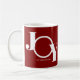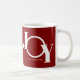 Esta mug fotográfica de Natal moderna é decorada com a palavra JOY em branco sobre um fundo vermelho burgundy. Facilmente personalizável com sua foto e seu nome.