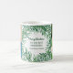 Modelo de colagem de fotos personalizável, caneca de natal alegre para a melhor mãe de todos os tempos com nomes personalizáveis no design de folhagem de cor aquática tropical verde. Um presente de excelente para qualquer mãe.