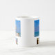 Esta caneca de café apresenta uma colagem colorida contendo vistas de Ambergris Caye, Caye Caulker e ruínas maias em Belize. Também contém uma foto de uma bela cena tropical oceânica em Belize com uma cabana, doca, céu azul e nuvens brancas. Paraíso!