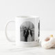 Caneca de Café com Arco de Fotos de Casal de Aniversário de 10 Anos de Casamento Moderna. Personalize esta caneca de café minimalista e elegante com 3 fotos de casamento, ou fotos de casal, e adicione seus nomes e data de casamento, ou outra data especial.