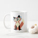 A raposa bonito da cabeça-tiltting veste um par de espetáculos azuis legal.