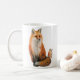 Uma aquarela serena ilustra uma raposa sentada graciosamente com uma borboleta delicada descansando na cauda. Essa design encantadora captura a harmonia entre a natureza e a vida selvagem, evocando um sentido de paz e curiosidade. Perfeito para amantes de animais florestais e temas de natureza artística.