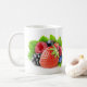 A caneca é de excelente qualidade, de bom peso e aparenta resistentência. O tamanho grande da caneca de 444 ml é muito prático, ela serve até para sobremesas. A alça é do tamanho certo para empunhadura, e oferece grande firmeza. A impressão ficou perfeita, a imagem ficou completamente nítida, e as cores vivas como na imagem do site.