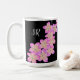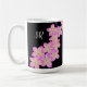 Apresenta flores cor-de-rosa e amarelas desenhadas à mão num fundo preto. Personalize com suas iniciais.