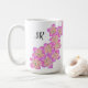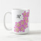 Apresenta flores cor-de-rosa e amarelas desenhadas à mão num fundo branco. Personalize com suas iniciais.