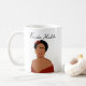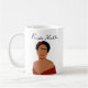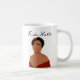 Uma simples caneca com uma ilustração da artista, Frida Kahlo, num vestido vermelho com sua assinatura.