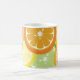 Uma gama colorida de frutas de citros, incluindo laranja, limão, limão e toranja numa caneca.