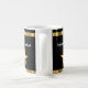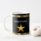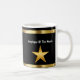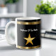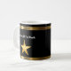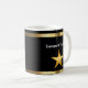Canecas de café Funcionário Elegante do Mês incluindo uma estrela dourada e elemento de design de linha geométrica juntamente com modelos de texto que você pode personalizar. Projetado para recompensar a excelência e produtividade no trabalho. O design é exibido em ambos os lados da xícara de café para bebedores destros ou canhotos.