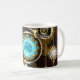 Caneca De Café Fundo Rusty Steampunk com Lentes Turquesa