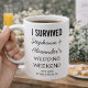 Add a dose of humor to your wedding weekend with this Funny Wedding Merch Custom Wedding Favor Keepsake Coffee Mug, designed to make guests smile long after the celebration ends. Featuring the playful phrase “I Survived the Wedding Weekend,” this mug is the perfect blend of witty, personal, and practical—making it a standout addition to your wedding merch station.