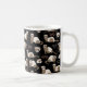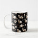 Furões feitos à mão, xoxo e corações, moldam caneca de café, fundo preto.