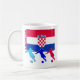 Três jogadores de futebol croatas na silhueta tocam em frente à bandeira croata. Nome do país Croácia está ao lado