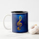 O G ou Treble se decole em ouro, com aspersão de pequenas notas ao seu redor, imagem criada com inteligência artificial. Expresse a sua essência musical sempre que bebe o seu cuppa desta caneca.