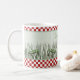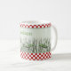 Este Gafanhotos Verdes Cutes Picnic Kids Coffee Mug apresenta fronteiras vermelhas e brancas de cima e de baixo, capturando a essência de uma encantadora cena piquenique, com gafanhotos verdes e bonitos escondidos na grama alta e preguiçosos rastejando. Personalize com um nome.