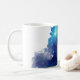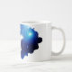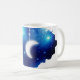 Um relógio de galáxia azul com estrelas e uma lua crescente pendurada. Em cores azuis, brancas e lacrimejantes. Uma visão elegante do espaço cósmico.