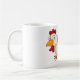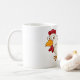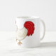 Esta design é uma galinha de desenho animado. O frango é branco com cauda vermelha e está de pé. O frango está no estilo do desenho animado. Este design de galinha de cartoon parece excelente nesta caneca