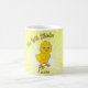 Bela animação de galinha com olhos azuis e raios solares. Personalizar para alterar o nome ou excluir o texto.