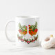 Galo colorido com galinha, folhas verdes e amoras de viburno vermelhas, Petrykivka pintando o tradicional estilo de pintura decorativa ucraniano