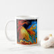 A caneca é de excelente qualidade, de bom peso e aparenta resistentência. O tamanho grande da caneca de 444 ml é muito prático, ela serve até para sobremesas. A alça é do tamanho certo para empunhadura, e oferece grande firmeza. A impressão ficou perfeita, a imagem ficou completamente nítida, e as cores vivas como na imagem do site.