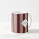 Uma caneca geométrica monogramada para personalizar com o nome de sua escolha em um plano de fundo listrado vertical clássico. Parte da nossa coleção de padrões Geométricos do Círculo Real. Presente perfeito ou adicionar algumas vibrações reais à sua vida.