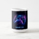 This premium mug features a high-energy sci-fi gaming illustration of a futuristic, original game controller, designed with intense neon cyan, electric magenta, and deep violet highlights for a bold, modern gaming aesthetic.
