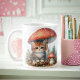 Caneca De Café Gatinho Adorável Sob O Guarda-Chuva De Cogumelo