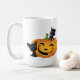 Dois gatinhos negros bonitos com um Jack O Lantern, e dizendo que Feliz Meow'lloween - que é personalizável para o que você sempre diz - Trick ou Treat - Perfeito para bebendo seu cacau quente numa noite fria de Halloween
