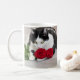 Gato bonito com a rosa vermelha. Itens correspondentes disponíveis em nossa loja.
