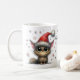 Caneca De Café Gato bonito de olhos grandes num chapéu de Natal