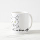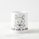 Desenho do rosto de um gato engraçado. O olho se fechou em um piscar os olhos. O gato sorri e piscar os olhos para você. Impressões e presentes engraçados para qualquer um. Caneca de café. Altere ou apague o texto Junte-se ao lado da luz, temos café...