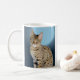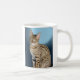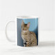 Gato gracioso do savana em um fundo azul. Você pode realmente ver o sangue do serval nesta cruz doméstico-selvagem do gato.