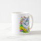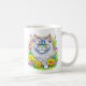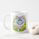 Gato Pérsico branco e giro rodeado por flores amarelas e cor-de-rosa, a aquarela botânica.
