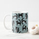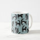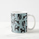 Felinos brancos e pretos, em seu negócio. Um padrão divertido num fundo azul de médio.