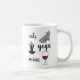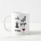 Uma adorável caneca de café com as palavras Cats Yoga Wine com desenhos animados de cada um. Faz o presente perfeito para uma mulher que adora vinho, ioga e seu gato (e café, é claro).